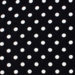Black and white polka dot cotton jersey rayon blend knit. Fabric is soft with a good stretch, nice drape, and is light to mid weight. Dots measures 1.25cm (see image for scale).