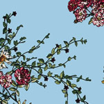 Drawn Floral Vines on Sky Double Brushed Jersey Spandex Blend Knit Fabric
