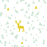 Gold Glitter Aqua Triangle Stag on White Cotton Jersey Blend Knit Fabric