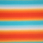 Love this print! Gradient rainbow stripes in different gradient hues of blues and orange on a super soft brushed cotton rayon spandex blend knit. Fabric is lighter weight, with a 4 way stretch, and nice drape. Largest stripe measures 11.5cm for scale. **Please note that due to unique dying process of this fabric there may be slight variations in the print.