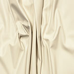 Neutral off white ivory colour poly spandex blend faux vegan leather. Fabric has a textured, small pebble matte surface on the front and a soft spandex knit backing in a white colour. This is a medium weight with a small mechanical stretch. Great for apparel, accessories, and more!