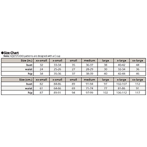 This pattern is available in sizes XXS to XXL, designed for a C cup.