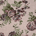 Plum Grey Rose Floral on Mocha Slub Cotton Jersey Blend Knit Fabric
