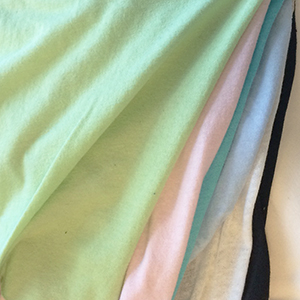 Top quality solid cotton jersey knit in a pretty neutral sky blue colour. Fabric is light weight with a nice stretch and soft hand. A top quality knit fabric made in Los Angeles, USA.