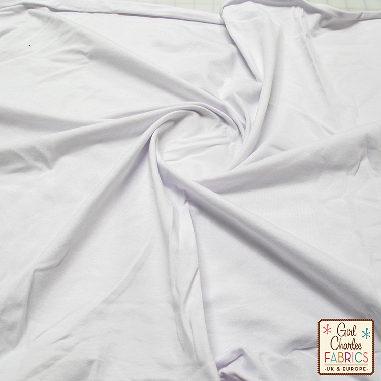 Top quality cotton spandex knit in a basic pure white colour. Fabric is true medium weight and has a great 4 way stretch and excellent recovery. Great with everything.